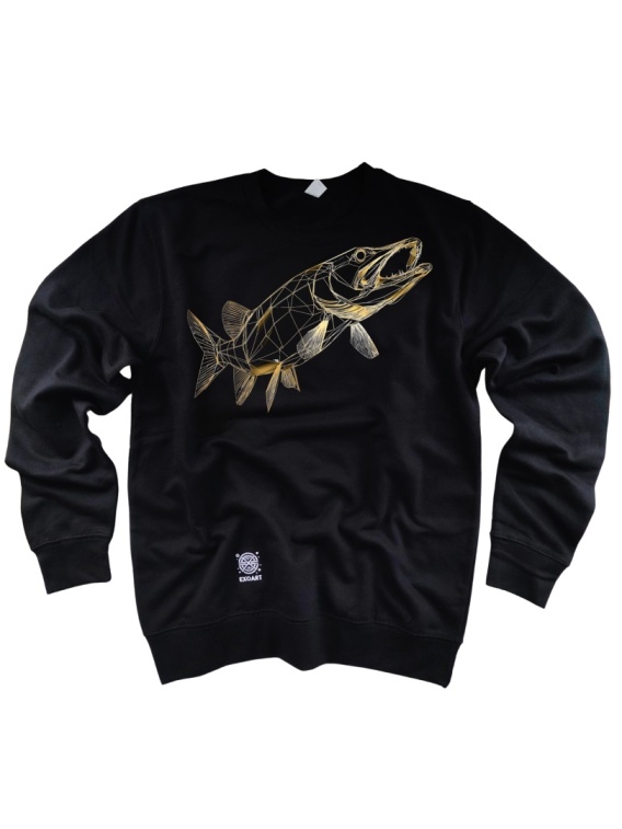 Autorska grafika Szczupak – Golden Edition – unikatowa bluza wędkarska z nadrukiem